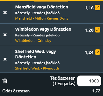 - Mansfield Town - MK Dons: A League Two tabellájának élén található Mansfield Town kedd este a rájátszás reményében játszó-, 5. helyezett MK Dons-t fogadja a One Call Stadionban. A Mansfield szombat délután szűk győzelmet aratott a Newport County otthonában, míg a Dons az utolsó percben szenvedett vereséget az ősi rivális AFC Wimbledon ellen, a csereként beálló Ronan Curtis 94. percben szerzett gólja elég volt a maximális pontszerzéshez a házigazdáknak. A február 17-én a Walsall ellen elszenvedett 2-1-es vereséget követően a Mansfield Town az elmúlt két hétben a Salford City és a Newport County elleni két sikerrel, hat gólt szerezve, újra kiegyenesedett és reálisan menetel a bajnoki cím felé. Mansfield az utóbbi időben szenzációs formában van a One Call Stadionban, a vereség után érkező MK Dons pontszerzése is már nagy eredmény lenne. 1X a tipp.