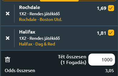 - Halifax Town - Dagenham & Redbridge: A feljutásért harcoló Halifax Town kedden este hazai pályán fogadja a kiesés ellen küzdő Dagenham & Redbridge csapatát, és a formájuk alapján egyértelmű esélyesnek számítanak. A Halifax jelenleg az ötödik helyen áll a National League-ben, és az elmúlt három bajnokiját megnyerte, legutóbb 3-0-ra győzve a Sutton United ellen. A Dagenham & Redbridge súlyos válságban van, hiszen immár 13 mérkőzés óta nyeretlen a bajnokságban, legutóbb 3-1-re kapott ki a Tamworth ellen. A csapat jelenleg a 20. helyen áll, és csak jobb gólkülönbségének köszönhetően nem csúszott a kiesőzónába, miközben a mögöttük lévő Wealdstone két mérkőzéssel kevesebbet játszott. Idegenben különösen gyenge teljesítményt nyújtanak, hiszen eddigi 18 vendégmeccsükből mindössze kettőt nyertek meg. Bár a vendégek képesek lehetnek egy szoros mérkőzésre, a Halifax jobb formája és a minőségi különbség miatt valószínű, hogy otthon tartja a három pontot.