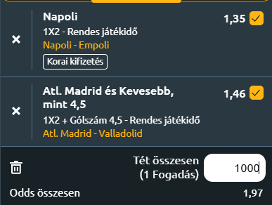 - Atletico Madrid- Real Valladolid: Az Atlético Madrid hazai pályán fogadja a La Liga sereghajtóját, a Real Valladolidot, és minden adott ahhoz, hogy Diego Simeone csapata magabiztos győzelmet arasson. Bár az Atlético a közelmúltban búcsúzott a Bajnokok Ligájától és a Király Kupától is, legutóbb egy drámai győzelmet arattak a Sevilla ellen, ami lendületet adhat nekik. Jelenleg harmadik helyen állnak a bajnokságban, három pontra a második Real Madrid mögött, így a cél most a második hely megszerzése lehet, különösen, ha a riválisok hibáznak. Ezzel szemben a Valladolid gyakorlatilag már kiesett, mindössze 16 pontjuk van 30 meccs után, és 14 pontos hátrányban vannak a bennmaradást érő helyhez képest. Ráadásul a leggyengébb támadósorral (csak 19 rúgott gól) és a legrosszabb védelemmel (69 kapott gól) rendelkeznek a mezőnyben, és már négy meccse folyamatosan kikapnak. Nagyon komoly minőségi különbség van a két gárda között, magabiztos több gólos Atleti győzelem is benne van a meccsben, de összességében nem lesz több gól, négynél.