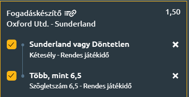 Ezek az ötletek kiválóan alkalmasak arra, hogy egy kétmeccses duplázóban az egyik tagot adják. Az odds alacsonyabb, viszont ezzel párhuzamosan a kockázat mértéke is csökken. A mérkőzésen két ellentétes célú csapat találkozik. Az Oxford United szombaton hazai pályán biztosíthatja be bennmaradását a Ligabajnokságban, a vendég Sunderland a rájátszás előtt szeretne formába lendülni.