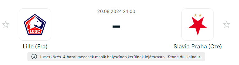 Talán a legnagyobb keresési találatot a sportfogadás témában a „Bet of the day” kulcsmondatra kapunk az interneten, vagyis a sportfogadást kedvelő olvasók arra kíváncsiak, mi lehet a nap tippje? A Lille a 2024-25-ös Bajnokok Ligája selejtezőjében az utolsó lépcsőfokhoz érkezett, ahol a Slavia Prágával mérkőzik meg a csoportkörbe jutásért.