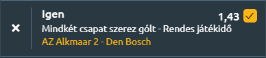 - A holland Eerste Divisie hétfő esti mérkőzésén a Jong AZ és az FC Den Bosch csapnak össze a wijdewormeri AFAS Trainingscomplex stadionban. A Jong AZ jelenleg a 12. helyet foglalja el az Eerste Divisie tabelláján. A szezon során 12 győzelmet, 14 vereséget és 9 döntetlent könyvelhettek el, miközben átlagosan 1,8 gólt szereztek és 1,71-et kaptak mérkőzésenként. Az elmúlt öt találkozójukon egy győzelem, egy vereség és három döntetlen a mérlegük, átlagosan 1,8 gólt rúgtak és 1,4-et kaptak. Legutóbbi mérkőzésükön magabiztos, 4-1-es idegenbeli győzelmet arattak az FC Emmen ellen, ami javíthatta az önbizalmukat. A korábbi Den Bosch elleni egymás elleni mérlegük ugyan nem túl kedvező, de hazai pályán most esélyesebbek. Az FC Den Bosch a 9. helyen áll a bajnokságban, eddig 14 győzelmet, 12 vereséget és 9 döntetlent jegyeztek. Átlagosan 1,46 gólt szereztek és 1,29 gólt kaptak meccsenként, vagyis védelmük stabilabb, mint a Jong AZ-é. Az elmúlt öt mérkőzésükön kétszer győztek, egyszer kikaptak, kétszer döntetlent játszottak, és ugyanúgy 1,8 gólt szereztek átlagosan, de ugyanennyit kaptak is. Legutóbb 0-0-s döntetlent értek el a VVV-Venlo ellen. A Jong AZ legutóbbi formája és a támadójátékuk hatékonysága alapján joggal számíthatunk arra, hogy otthon dominálni fognak, de a Den Bosch szervezett védekezése és az egymás elleni jó múltbeli eredményeik miatt nem lesz könnyű dolguk. Várhatóan gólgazdag, nyílt mérkőzést láthatunk, ahol mindkét csapat betalál majd.