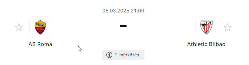 - A Roma hazai pályán rendkívül masszív, és a közelmúltban szerzett nemzetközi tapasztalata komoly előnyt jelenthet számukra. Az Athletic Bilbao viszont támadóerejének és jó formájának köszönhetően képes lehet megnehezíteni az olaszok dolgát, különösen, ha Nico Williams formában játszik. A hazaiaknak kötelező gólt szerezni, hiszen csak azzal lehet előnyt kiépíteni, a vendéggárda pedig remek támadási hatékonysággal rendelkezik, így a gólváltásnak jó esélye van!