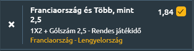 - Franciaország és Lengyelország legutóbb a 2022-es világbajnokságon találkoztak, ahol a franciák 3:1-es győzelmet arattak. Úgy tűnik, hogy a minőségi különbség most még nagyobb. Ha Franciaország meg akarja szerezni az első helyet a csoportban, meggyőző győzelmet kell aratnia. Nehézségeik voltak az első két mérkőzésen, de ezzel a felállással ez nem folytatható. Sokkal aktívabb és eredményesebb gallokat várhatunk Lengyelország ellen, amely képes nyerni és hogy a mérkőzésen legalább 2.5 gól szülessen.