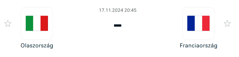 - Franciaország Didier Deschamps irányítása alatt ingadozó teljesítményt mutat. Bár csoportjuk utolsó helyezettje, Izrael ellen 0-0-s döntetlent játszottak, előtte három győzelmet arattak, köztük két sikert Belgium ellen. A francia csapatnak kétgólos győzelem kellene ahhoz, hogy csoportelsők legyenek, így a San Siróban valószínűleg támadóbb felfogásban lépnek pályára. Kylian Mbappé hiányzása továbbra is kérdéseket vet fel, míg Wesley Fofana, Ousmane Dembélé, Loïc Badé és Aurélien Tchouaméni szintén sérültek. Az AC Milan játékosai, Theo Hernández és Mike Maignan hazai pályán bizonyíthatnak, míg az Inter Milan sztárja, Marcus Thuram vezetheti a támadósort Randal Kolo Muani mellett. Kingsley Coman, Michael Olise és Bradley Barcola a támadótrióban versengenek a helyekért.