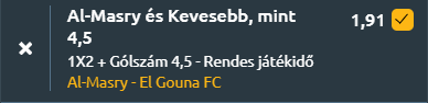 Tipp: Al-Masry nyer és kevesebb, mint 4,5 gól a mérkőzésen