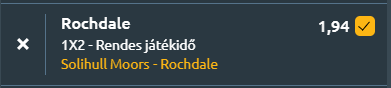 - Mire számíthatunk mindezek alapján? A két csapat formája alapján egyértelműen a Rochdale tűnik esélyesebbnek, ők épp felfelé ívelő formában vannak, míg a Solihull Moors legutóbb megtorpant egy vereséggel. Ráadásul a Rochdale célja komolyabb, hiszen a hazai pályás playoff-meccs kiharcolása sokat jelenthet számukra, a hazaiak számára már nincs olyan komoly tét a meccsen. Vendégsiker várható!