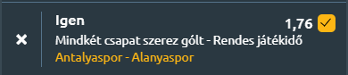- A tavalyi erős szezon után az Antalyaspor idén gyengébben szerepelt, összeszedett 12 vereséget, ami edzőváltáshoz vezetett. Emre Belözoğlu kinevezése után elkezdett javulni a teljesítményük! Az új edző irányítása alatt az elmúlt kilenc mérkőzésükből csak hármat veszítettek el, ezek közül kettőt a török bajnokság két legerősebb csapata, a Galatasaray és a Fenerbahce ellen. Hazai pályán pedig különösen erősek, hiszen Belözoğlu irányítása alatt még nem kaptak ki az Antalyaspor stadionjában, két győzelem és két döntetlen a mérlegük. A vendégek gyenge formát mutatnak, a gárda a legutóbbi hat bajnokijából ötöt elveszített, és a nemrég menesztett Sami Ugurlu után most Joao Pereira érkezett a csapat élére. Az új edző számára nehéz lesz azonnali eredményeket produkálni, főleg idegenben, ahol az Alanyaspor kifejezetten gyengén teljesít, mindössze két győzelmet arattak 14 vendégszereplésük során. A mai meccsen nem lehet győzelmi elvárás a vállaikon, ezért a gárda felszabadultan játszhat, Joao Pereira megtalálja a módját annak, hogy csapata veszélyes legyen a hazai kapura. Az Antalyaspor védelme a szezonban nem mindig áll stabil lábakon, amit a Galatasaray elleni 4-0-s vereség is bizonyít. Az Alanyaspor ugyan rossz formában van, de egy új edző érkezése sokszor pozitív lökést ad egy csapatnak, és egy gólra jó eséllyel képesek lehetnek, főleg ha az Antalyaspor védelme ismét sebezhetőnek bizonyul. A hazai győzelem mellett a gólváltásnak is megvan az esélye!