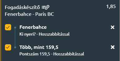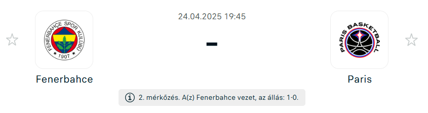 - Az első mérkőzés egyértelműen megmutatta, hogy a Fenerbahce egyéni kvalitásban, mélységben és főleg támadólepattanózásban fölényben van. Bár a végeredmény szoros volt, a játék képe inkább a törökök dominanciáját tükrözte, főként a második félidőben, amikor a Paris egyre nehezebben talált tiszta dobóhelyzeteket. A második összecsapáson elvárható, hogy Fenerbahce még magabiztosabban játsszon, és amennyiben ismét képes kontrollálni a tempót, akkor nagy eséllyel megduplázhatja előnyét. A Paris csak akkor maradhat versenyben, ha hatékonyabban védekezik a palánk alatt, és a kiegészítő emberek is fel tudnak nőni a feladathoz. A hazai csapat lehozza ezt a győzelmet is 2-0-lal fordulnak majd és sok pontot várhatunk, minimum 160 lesz.