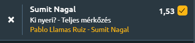 - Sumit Nagal a jobb játékos, mivel erősebb a támadó játéka, és több tapasztalata van magasabb szintű ellenfelek ellen. Nagal várhatóan próbálja majd irányítani a játékot, míg Llamas Ruiz türelmesen védekezik és az indiai hibáira épít. Ha Nagal pontosan és kevés hibával játszik, akkor ő az esélyesebb, de ha Llamas Ruiz be tudja húzni a hosszú labdameneteket és kizökkenti ellenfelét a ritmusból, akkor meglepetést okozhat. Az első opció sokkal esélyesebb, várhatóan az indiai játékos kényszeríti rá akaratát a spanyolra.