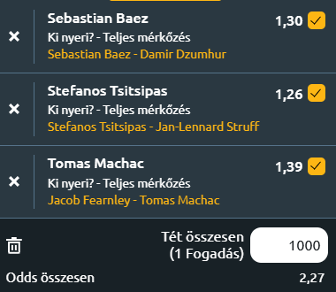 - Tsitsipas jó formában van salakon, TOP10-es kategória, rendkívül technikás és kifejezetten jó salakon. A Monte-Carlóban is döntőzött, míg Struff idősebb is, technikailag gyengébb és inkább gyorsabb borításon veszélyes.