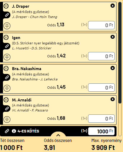 - Stricker csodálatos játékkal verte meg Drapert. Ez meglepetéseredmény volt. Ezzel a játékkal Musetti ellen is esélyes egy szettre.