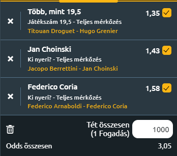 - Berrettini – Choinski: Choinski jó formában van mostanság, ez a Berrettini pedig nem az a Berrettini!