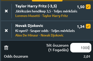Tipp: Nyer Novak Djokovic – 1,34 A kettő együtt egy dupla.