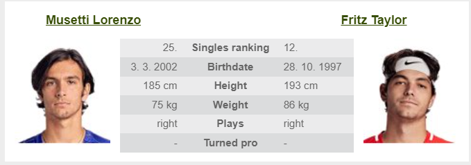 - Musetti egy nagyon technikás, tehetséges játékos, kiváló lábmunkával, remek tenyeressel és a tenisz többi szegmensében is elég jó. Sokáig úgy tűnt, hogy elsősorban a salakon fogja otthon érezni magát, de aztán meglepetésre egészen jó játékot nyújtott a füvön is. Egyre jobban fogadta az adogatásokat, ez a füvön különösen fontos, Mpetshi Perricard megdolgozta rendesen, de állta a sarat. Az olasz mentálisan is jó és különösen jó az atletikussága, szívós, gyors és nemigen fárad el. A fű viszont különösen gyors és ott a nehéztüzérek vannak előnyben! És Musetti a füves szezonban még nem találkozott olyan erővel, mint Fritz! Ha megnézzük az eddigi meccseit, nagyon szerencsés sorsolása volt!