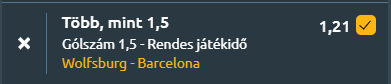 Tipp: Több, mint 1,5 gól a mérkőzésen – 1,21
