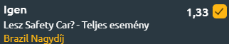 Az esetleges eső miatt jó esély van a safety carra, de ahogy tegnap is láttuk, akár száraz vagy száradó körülmények között is történhet olyan baleset, ami a biztonsági autó pályára küldését idézheti elő.