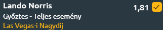 Szerintünk nem érdemes Norris ellen fogadni, amíg ilyen formában van, folyamatosan megéri rárakni a pénzt. Még ha egyszer meg is tör ez a lendület, az nem jelenti azt, hogy ne tudná utána újra ott folytatni, ahol az utóbbi hétvégéken járt.