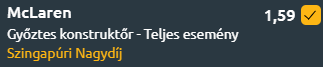 69 pontos hátránya még így is tetemes, ezért érdemes inkább Norrisra és Piastrira koncentrálni, akik között 25 pont a különbség, az ausztrálnak több futamgyőzelme révén a pontegyenlőség is kedvez.