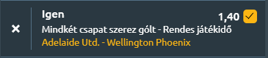 - Az ausztrál A-League 7. helyezettje, az Adelaide United találkozik a 11. helyen álló Wellington Phoenixszel. A találkozó gólokban gazdag, látványos mérkőzést ígér, hiszen mindkét csapat támadó felfogású futballt játszik, miközben védekezési gondokkal küzd. A legutóbbi fordulóban mindkét csapat vereséget szenvedett: Adelaide 4-1-re kapott ki a Perth Glorytól, míg Wellington Phoenix 3-2-re maradt alul a Melbourne Victory ellen. Ezek az eredmények megerősítik, hogy egyik fél sem stabil hátul, viszont képesek a gólszerzésre. A két csapat egymás elleni mérlege az Adelaide felé billen: az utóbbi öt meccsből hármat megnyertek, egyszer döntetlen lett, egyetlen alkalommal pedig a Phoenix nyert. Ezeken a meccseken Adelaide 2.6 gólt szerzett átlagosan, míg Wellington 1.4-et, ez is a nyílt játék és a sok találat felé mutat. Az aktuális forma alapján az Adelaide United gyengélkedik: az utóbbi öt meccsén nem nyert, négyszer kikapott, egyszer ikszelt, és bár meccsenként 2.2 gólt is szerzett, közben 3.6-ot kapott – tehát a hátsó alakzat szinte teljesen szétcsúszott. Wellington Phoenix kissé kiegyensúlyozottabban teljesít: egy győzelem, két döntetlen és két vereség, 1.6 rúgott és 2.2 kapott góllal. Összegezve tehát két-, védekezésben gyenge, ám támadásban aktív csapat találkozik, ahol a pontokért folytatott harc mellett a védekezési hibák, valamint a magas gólátlagok is garantálják a gólváltást.