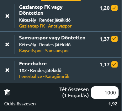 - Kayserispor – Samsunspor: Komoly kihívással indul Dalovic munkája a Kayserispor kispadján, hiszen a győzelem nélkül szenvedő csapat a stabil és lendületes Samsunspor ellen lép pályára. A hazaiak eddigi szezonja kifejezetten gyenge, nyolc bajnoki mérkőzésen öt döntetlent és három vereséget értek el, így már tizenegy tétmeccs óta nyeretlenek. A korábbi vezetőedző, Gisdol távozása nem volt meglepetés, hiszen négy hónap alatt egyetlen tétmérkőzést sem tudott megnyerni, átlagosan mindössze 0,63 pontot gyűjtve találkozónként, ami a tabella alsó régiójába sodorta a csapatot. A Samsunspor legutóbbi négy mérkőzésén veretlen a Kayserispor ellen, és legutóbb a Fenerbahce otthonában is értékes döntetlent harcolt ki, sőt egy meg nem adott gólig is eljutott. Thomas Reis együttese szervezett, intenzív futballt játszik, és idegenben is stabil formát mutat, három bajnoki találkozón egy győzelemmel és két döntetlennel. Mindez azt vetíti előre, hogy bár a Kayserispor az új edzőben bízik, a vendégek összeszedettsége és jobb formája döntő lehet, így a Samsunspor nem kap ki a meccsen!