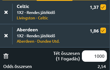 - Livingston – Celtic: A skót bajnokság leggyemgébbike, a Livingston a bajnoki címért küzdő Celticet fogadja a skót élvonal 19. fordulójában. A Livingston 17 forduló után továbbra is az egyetlen csapat, amely nem érte el a tízpontos határt, mindössze kilenc pontot gyűjtött egy győzelemmel, hat döntetlennel és tíz vereséggel, legutóbb pedig 1–0-ra kapott ki a St Mirren otthonában, ezzel minden sorozatot figyelembe véve 17 meccses nyeretlenségi szériába került. Egyetlen sikerüket augusztus 9-én aratták, amikor a Falkirk ellen 3–1-re nyertek hazai pályán. A Celtic a bajnokság egyik esélyese, 17 bajnokiból 11 győzelmet aratott, 35 ponttal a második helyen áll, és legutóbb fontos 3–1-es sikert könyvelt el az Aberdeen ellen, lezárva egy négymeccses vereségsorozatot, amelybe a St Mirren elleni Ligakupa-döntő elvesztése is beletartozott. Semmit nem tudunk felhozni a hazai győzelem mellett, hatalmas meglepetés lenne még a Livingston pontszerzése is.