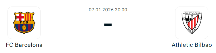 - A Barcelona nyolcmeccses győzelmi sorozattal érkezik a találkozóra, legutóbb 2–0-ra verte az Espanyolt, és továbbra is vezeti a La Liga tabelláját, négy ponttal megelőzve a második helyezett Real Madridot. A katalán együttes október vége óta nem veszített hazai sorozatban lejátszott tétmérkőzést, és címvédőként várja az Athletic elleni elődöntőt, miután tavaly 5–2-re győzte le a Real Madridot a fináléban, míg a bilbaóiakat 2–0-ra búcsúztatta ebben a szakaszban. A Szuperkupát eddig 15 alkalommal nyerték meg, és az idény végére három hazai trófea is elérhető közelségben van számukra, miközben a Bajnokok Ligájában jelenleg a 15. helyen állnak. A bajnokságban már 4–0-ra legyőzték az Athleticet ebben a szezonban, és az utóbbi öt egymás elleni meccsen mindössze egy gólt kaptak. A keret szinte teljes, Ronald Araujo is lassan készen áll a játékra, de Andreas Christensen és Gavi továbbra is sérülés miatt hiányzik.