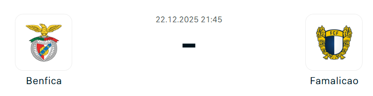 - A Benfica az előző fordulóban a Portugál Kupában könnyed 2-0-s győzelmet aratott a Farense ellen, Richard Rios gyors gólja után Franjo Ivanovic találata biztosította a győzelmet. A Primeira Ligában a harmadik helyen állnak kilenc győzelemmel és öt döntetlennel a 14 mérkőzés után, vereség nélkül, bár öt döntetlen tíz pontot vettek el a csapattól, így nyolc pontra vannak a tabella élétől. José Mourinho együttese hazai pályán veretlen Famalicao ellen az elmúlt nyolc mérkőzésen, hét győzelem és egy döntetlen a mérleg, és bár Bruma, Nuno Felix és Alexander Bah továbbra is sérültek, Leandro Barreiro kérdéses, Vangelis Pavlidis viszont visszatérhet az előző heti triplája után.