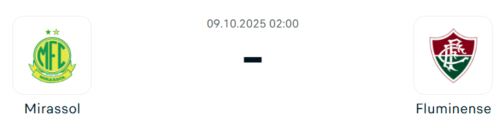 - A Mirassol számára emlékezetes idény az idei, hiszen fennállása során először szerepel a brazil élvonalban, és eddig minden várakozást felülmúl. A csapat 26 mérkőzés után a hatodik helyen áll, 43 pontot gyűjtve 11 győzelemmel, 10 döntetlennel és mindössze öt vereséggel. Sikerük kulcsa a támadó felfogás: eddig 42 gólt szereztek, ami az egyik legmagasabb mutató a ligában, ugyanakkor 28 alkalommal kaptak gólt. Otthon különösen erősek, hiszen az Estadio José Maria de Campos Maiában eddig veretlenek, ami igazi erősségüknek számít. Ugyanakkor az utóbbi hetekben visszaesett a formájuk: az elmúlt öt bajnokiból csak egyet nyertek meg, és legutóbb 3–0-s vereséget szenvedtek a Corinthians otthonában. Rafael Guanaes együttese az utóbbi öt találkozón így is hat gólt szerzett, de védekezésben javulniuk kell, különösen egy olyan ellenféllel szemben, mint a Fluminense. Lucas Ramon és José Aldo eltiltás miatt, Edson Carioca és Matheus Sales pedig sérülés miatt nem állhat rendelkezésre, viszont Neto Moura visszatérhet a keretbe.