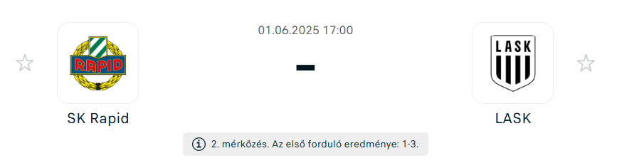 - A LASK kiváló kiinduló helyzetből várhatja a visszavágót, hiszen 3-1-re nyert otthon, és formája is meggyőző. A linziek csupán kétszer kaptak gólt az elmúlt öt mérkőzésükön, és háromszor kapott gól nélkül hozták le a találkozót. 2025-ben eddig mindössze három vereséget szenvedtek el húsz meccsen, ezek közül is csak egyszer kaptak ki kétgólos különbséggel, márciusban a Sturm Graz ellen. Az együttes veretlen az utóbbi három találkozóján, ezek közül kettőt meg is nyertek, sőt idegenben is kifejezetten erősek! Az elmúlt öt vendégfellépésükből négyet megnyertek. A támadósorban Robert Zulj játéka biztosra vehető, hiszen az első meccsen kétszer is betalált a Rapid ellen. Mellette Danek és Entrup szereplése várható, míg a középpályán Ljubic és Coulibaly párosa kezdhet, mivel Horvath sérülés miatt kérdéses. A védelem oszlopa a rutinos Boateng, mellette Andrade és Cisse biztosíthatják a stabilitást.