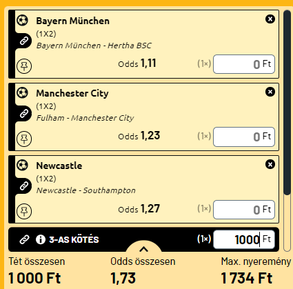 - A Manchester City bajnoki címvédése már csak saját kezében van. Két meccsel kevesebbet játszott a Guardiola-banda és mivel az Arsenal már ötmeccses nyeretlen üzemmódban van, a City nem most fog leállni. A Fulham 45 ponttal a 45 ponttal a 10-ik, ők abszolút a középmezőny langyos biztonságában evezgetnek. Itt vendégsikert várok, míg a Newcastle – S’Oton meccsen hazait, ahol a Szarkák erős szárnycsapásokkal röpülnek az bronzérem felé és ezzel a BL-csoportkör felé. Ha ez sikerül, akkor érkezik Cristiano Ronaldo, az ígéret szerint. Az már kérdés, hogy kell-e ez a Newcastle-nek vagy sem, de ez majd a jövő problémája lesz. A ma feladata megverni a tökutolsó Southamptont. Ez menni fog.