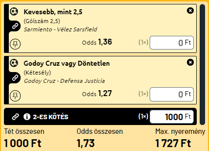 - Sarmiento - Vélez Sarsfield: A Sarmiento és a Velez Sarsfield péntek este csap össze, és mindössze három pont választja el a csapatokat az argentin Primera Division tabelláján. A 18. helyen álló hazaiak jelenleg sovány előnyben vannak a 22. helyen álló ellenféllel szemben, amely hat pontra van a két utolsó helyezettől. A Sarmiento a 2022-es évad gyenge befejezése után a túlélés céljával vágott neki a 2023-as idénynek, és jelenleg jó úton halad a cél elérése felé. Annak ellenére, hogy a két csapat jócskán a tabella alsó felében helyezkedik el, a védelemben jól dolgoznak a csapatrészek. A támadójátékkal van gond mindkét oldalon, ezért az undert találom jó megoldásnak.