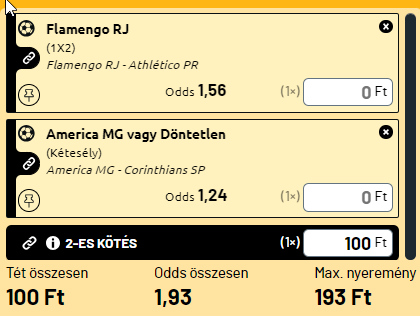 - America MG - Corinthians SP: Az America Mineiro szerda este a Corinthians csapatát fogadja a kupában, mindkét együttes az elődöntőbe akar kerülni. A házigazdák az Atletico Mineiro elleni döntetlen után lépnek pályára az első mérkőzésen, míg a vendégek legutóbb szoros vereséget szenvedtek a Bragantino ellen. Tekintettel arra, hogy a formán kívüli Corinthians az elmúlt 17 mérkőzéséből mindössze négyet tudott megnyerni, a döntetlen mellett a hazai sikert vettem figyelembe.