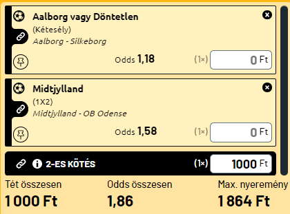 - Aalborg – Silkeborg: A Silkeborg a jobb csapat a kettő közül, de nekik már nincs miért játszani, nincs motiváció, viszont az AaB még kieshet és ez megacélozza most őket és nem kapnak ma ki.