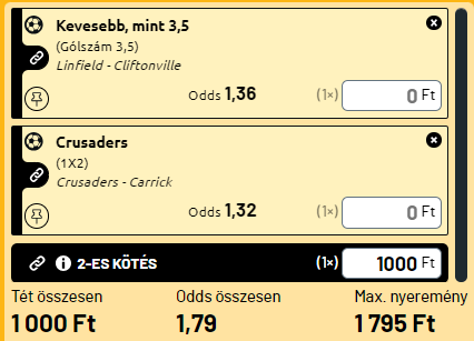- Linfield – Cliftonville: A két legjobb csapat találkozik jelenleg és a Larne mellett tavaly is a dobogón végeztek mindketten. Három forduló telt el a bajnokságból, a Cliftonville száz százalékos és még csak gólt sem kapott, ellenben lőtt 10-et, viszont nem játszott nehéz ellenfelekkel még. A Linfield szintén száz százalékos, 8 lőtt és 4 kapott találattal. Azt gondolom, hogy a vendégeknek nem lenne rossz egy döntetlen ma. Ennek megfelelően óvatos játékot várok és maximum három gólt.