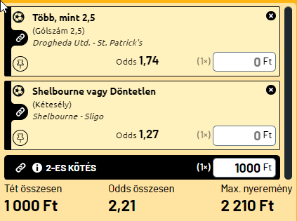 - Shelbourne – Sligo: Két hely választja el a Shelbourne-t és a Sligo Rovers-t a League of Ireland Premier Divisionben a pénteki, Tolka Parkban megrendezésre kerülő találkozó előtt. A Shelbourne hazai körülmények között általában pozitív eredményeket ér el, de ugyanez nem mondható el a Roversről, amelynek idegenbeli formája sok kívánnivalót hagy maga után. A Shelbourne öt hazai győzelme egygólos különbséggel született, míg a Rovers vereségei általában hasonlóan végződnek. Ennek megfelelően egy szoros meccset várunk, amely jó eséllyel hazai eredménnyel ér véget, de a döntetlen is benne van.