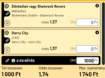 - Derry City - Cork City: A Derry City a jó formában lévő Cork Cityt fogadja a Ryan McBride Brandywell Stadionban. A házigazdák egy kiábrándító nyeretlenségi sorozatot követően lemaradtak a listavezető Shamrock Rovers mögött, míg a vendégek a tavalyi feljutás után kezdik megvetni a lábukat ezen a szinten is. Viszont idegenben brutál gyengék, ma sem lesz pont belőle.