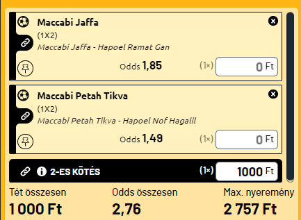 - Lássuk mi sül ki két esélyes hazai győzelemből. Itt ráadásul komoly-, majdnem triplázó szorzóval lehet számolni!