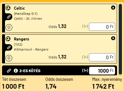 - Annak ellenére, hogy a szezon korábbi fordított megrendezésű mérkőzésén a Celtic kikapott a St Mirrentől, a szenzációs pillanatnyi formáját tekintve szerdán a maximális pontok megszerzésének egyértelmű favoritjának számít. Az elmúlt hónapokban hazai pályán ontotta a Celtic a gólokat, a St. Mirren pedig az elmúlt 10 meccsükön mindössze egy kapott gól nélküli meccset tudhatnak magukénak. Hendikepről is nyer a Celtic.