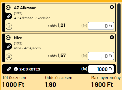 Az olvasók kedvenc rovatában 2,0 és 3,0 közötti szelvényeket próbálunk összehozni, amelyben két-három mérkőzést kombinálunk majd egy ajánlatba. Az eredő szorzó 1,8 ás 2,2 között lehet, a meccskínálat függvényében. A cél, hogy minél alacsonyabb kockázati tényezővel lehessen játékba küldeni a szelvényt akár papíros változatban, akár a neten. Fosszuk ki az irodákat együtt!