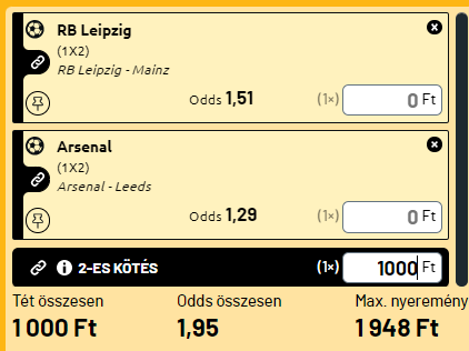 - Az Arsenal vezet a Premier Ligában, ráadásul kiugróan jó formában vannak, de a City, ha az elmaradt meccsét is figyelembe vesszük, akkor csak 5 pont a különbség. Ez pedig még nem túl megnyugtató az Ágyúsokra nézve. Ezért kötelezően hozni kell a győzelmeket, ahogyan hozza a City is! A Leeds a 14. helyen áll, idegenben 14 meccsből csupán kettőt tudtak megnyerni, de döntetlen is csak három van. Nem sok esélyük van ma!