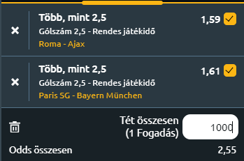 - Róma – Ajax: A Roma a Bayern elleni idegenbeli döntetlennel kezdte a csoportkört, míg az Ajax a Paris Saint-Germain ellen aratott 2-0-s győzelmet. A Roma reméli, hogy megismételheti a tavalyi európai sikereit, miután első Bajnokok Ligája-csoportkörben való szereplésük során a negyeddöntőig jutottak. A Róma a Barcelona elleni márciusi vereség óta az utolsó nyolc hazai mérkőzését megnyerte. Az Ajax önbizalma a hétvégén némileg megcsappant a szezon első vereségét követően, de ma megnehezítheti a hazai csapat győzelmi törekvéseit. Itt is az over esélyes.