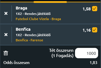 - Benfica – Farense: ez pedig abszolút erős hazai győzelem! A kettő együtt egy remek szorzó péntekre!