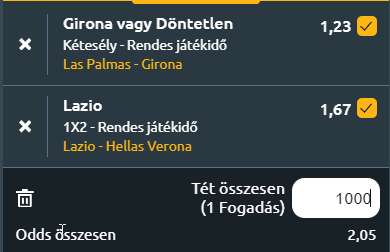- Las Palmas – Girona: A Girona szombat délután egy formán kívüli Las Palmas ellen lép pályára a La Ligában annak tudatában, hogy egy győzelemmel a Barcelona fölé, a tabella második helyére léphet. A vendégek figyelemre méltóan teljesítenek, a következő szezonban a Bajnokok Ligájában való szereplésük szinte biztosra vehető! Az teljesen egyértelmű, hogy hosszú évek óta nem láttunk olyan meglepetést, amit a Girona szereplése jelent. Mivel a kis katalán csapat a Manchester City Group tagja, nem lennék meglepve, hogy ha jövőre itt látnánk Vancsa Zalánt játszani! A Las Palmas a 13. helyen áll, 12 ponttal a kieső zóna felett, számukra nincs már tét a mecseken, ráadásul nincsenek jó formában. Egy motivált és felpaprikázott Gironát várok ma a pályára, amely nem fog döntetlennél rosszabb eredményt elérni a Kanári Szigeteken! X2 a tipp.