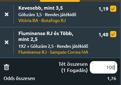 - Vitoria – Botafogo: A Botafogo sorozatban harmadszor is bejuthat a Copa do Brasil legjobb 16 csapata közé, ha ma nem kap ki a Correa ellen. Az első meccsen a brazil gárda szolidan, 1-0 arányba nyert a salvador gárda ellen. A Vitoria az elmúlt négy esetből háromban kiesett, amikor egy kétmeccses párharc első mérkőzését elveszítette. Csak egy alkalommal tudott visszajönni és továbbjutni: a 2021-es harmadik fordulóban 3-1-re legyőzte az Internacionalt, miután az első mérkőzést 1-0-ra elveszítette. A Vitoria már megmutatta többször is, hogy jó védekezésével képes szoros meccseket hozni, de ez ma is maximum arra lesz elég, hogy döntetlen lesz, ami a Botafogonak is jó. Összességében a kevesebb, mint 2,5 gól vállalható tipp.