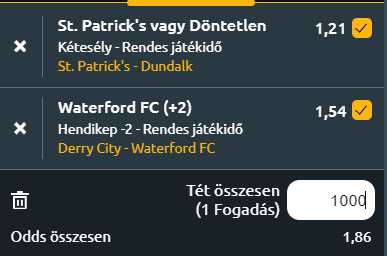 - St Patrick's Athletic – Dundalk (7.-10.): A St. Patrick a hetedik helyen áll és a legutóbbi győzelme után április óte először győzhet kétszer egymás után, hiszen ma az utolsó helyen áll Dundalk lesz a vendég. A Szentek az új vezetés alatt egyre nagyobb önbizalommal rendelkeznek a Galway United elleni legutóbbi sikert követően, míg a vendék a Derry City ellen begyűjtött pontra szeretnének építeni. Miután nem sikerült kivezetnie az Ír Köztársaságot a nyári németországi Európa-bajnokságra, Stephen Kenny távozott a nemzeti csapat éléről, és most a St Patrick's-ben vezeti a csapatot, az 52 éves szakember első négy mérkőzésén négy pontot szerzett. Kenny mester bízik abban, hogy a Dundalk legyőzésével, amely még nem szerzett három pontot idegenben, ismét hazai győzelmet könyvelhet el. De mivel a vendégeknél is volt edzőváltás és kicsi fejlődés érzékelhető, figyelembe kell venni a döntetlent is. 1X a tipp.