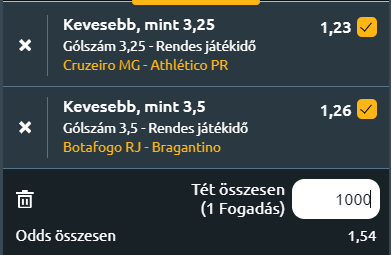 - Botafogo – Bragantino: Botafogo szerdán fogadja a Bragantinót a Brasileirao Serie A-ban az Olimpiai Stadionban. A hazai csapat két meccs óta nem tudott győzni, míg a vendégek legutóbb győzelmet arattak. Botafogo legutóbb Criciuma ellen szenvedett vereséget, ami a szezon harmadik veresége volt. Ezzel elveszítették az első helyüket, és a negyedik helyre csúsztak vissza. Bragantino legutóbb Vitoria ellen nyert 2-1-re, és győzelem esetén bekerülhetnek a legjobb négy közé. Itt is szoros meccs várható és kevés gól. Kevesebb, mint 3,5 gól várható.