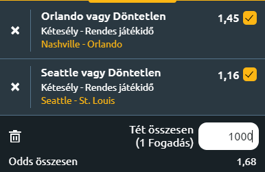 - Nashville SC - Orlando City: A Nashville jelenleg a Keleti Konferencia kilencedik helyén áll, 23 mérkőzésen hat győzelemmel, nyolc döntetlennel és kilenc vereséggel. A csapat az utóbbi négy meccsén 10 gólt kapott és csak 26 gólt szerzett a szezonban, ami az egyik legkevesebb az MLS-ben. Ezzel szemben Orlando a hetedik helyen áll, négy ponttal előrébb, és három egymást követő győzelemmel érkezik. Az utóbbi öt mérkőzésükből négyet megnyertek, beleértve a legutóbbi három találkozójukat a Toronto, a DC United és a New England ellen. Orlando idegenben is erős, 12 mérkőzésen 18 pontot szereztek, ami a negyedik legjobb teljesítmény a tabellán. Minőségi különbség van a két gárda között, a hazai pálya előnye miatt a döntetlen mellett a vendégsikert kell figyelembe venni. X2