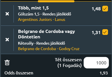 - Argentinos Juniors – Lanus: Az Argentinos Juniors egy hullámvölgyben fogadja a Lanus csapatát az Estadio Diego Armando Maradona Stadionban. Az előző mérkőzésükön 2-0-ra kikaptak a Deportivo Riestra ellen az Estadio Guillermo Laza stadionban. Hamar emberhátrányba kerültek, de a félidőig tartották a döntetlent. Aztán Riestra belehúzott és Antony Alonso és Gonzalo Bravo második félidőben szerzett góljai eldöntötték a mérkőzést. Ennek következtében az Argentinos a 18. helyre csúszott a tabellán, és csak négy ponttal állnak a kieső zóna fölött. Ma szeretnének visszatérni a győztes útra hazai környezetben a Lanus ellenében és ez a célkitűzés nem irreális. A csapat nélkülözi Luciano Sanchez-t, valamint Erik Godoy-t, aki az előző mérkőzésen kapott piros lapot. A Lanus egy négy meccse tartó veretlen sorozatban van. LEgutóbb 3-2-re nyertek a Belgrano ellen. Ricardo Zielinski csapata Marcelino Moreno góljával szerzett vezetést, de Esteban Rolon egyenlített. Ezt követően Mateo Sanabria és Jonathan Torres góljaival maguk javára fordították a meccset, és Franco Jara találata már nem változtatott az eredményen. A Lanus 12 pontot gyűjtött eddig hét mérkőzésen, és ezzel a hetedik helyen állnak a tabellán, mindössze két ponttal lemaradva a legjobb négytől. Az utóbbi 11 mérkőzésükből csak egyet veszítettek el, így komoly kihívást jelentenek az ellenfelek számára idegenben is. Marcelino Moreno egymást követő mérkőzéseken szerzett gólt, és továbbra is jó formában várja a következő találkozót. Walter Bou, aki az utóbbi két mérkőzést kihagyta, visszatérhet a csapatba. Az Argentinos hazai pályán ad bele mindent, hogy újra győzni tudjon, a vendégek jó formában vannak és sok gólt lőnek általában. Lesz minimum két találat ezen a meccsen.