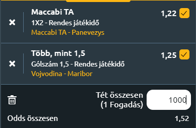 - Maccabi Tel Aviv - FK Panevezys: A Maccabi Tel Aviv az előző szezonban megnyerte az izraeli bajnokságot, ami lehetőséget biztosított számukra, hogy a Bajnokok Ligája selejtezőjében induljanak. Az első fordulóban a román FCSB volt az ellenfelük, ahol idegenben 1-1-es döntetlent értek el, és sokan úgy vélték, hogy a hazai visszavágón kiharcolhatják a továbbjutást. Azonban a hazai mérkőzést az izraeli konfliktus miatt külföldön kellett lejátszaniuk, ami megnehezítette a dolgukat, és végül az FCSB továbbjutott, a Maccabi pedig az Európa Liga selejtezőjében találta magát, ahol most az FK Panevezys ellen küzdenek. Az első mérkőzést a Maccabi Tel Aviv 1-0-ra megnyerte, és így előnnyel várhatják a visszavágót. A litván FK Panevezys az utóbbi időben nem mutatott jó formát. Bár a Bajnokok Ligája selejtező első fordulójában 3-0-ra legyőzték a finn HJK-t, azóta sorozatos kudarcok érték őket. A Jagiellonia kiejtette őket a Bajnokok Ligája selejtezőből, majd az Európa Liga első mérkőzésén is vereséget szenvedtek a Maccabi Tel Aviv ellen. Emellett a litván bajnokságban is nehéz helyzetben vannak, hiszen tíz fordulóval a szezon vége előtt a kieső zónában helyezkednek el. Bár Maccabi Tel Aviv a hazai mérkőzéseit Magyarországon kénytelen lejátszani, az első mérkőzésen bizonyította, hogy erősebb csapat, mint az FK Panevezys, így ma várhatóan simán nyerni fognak. HAZAI